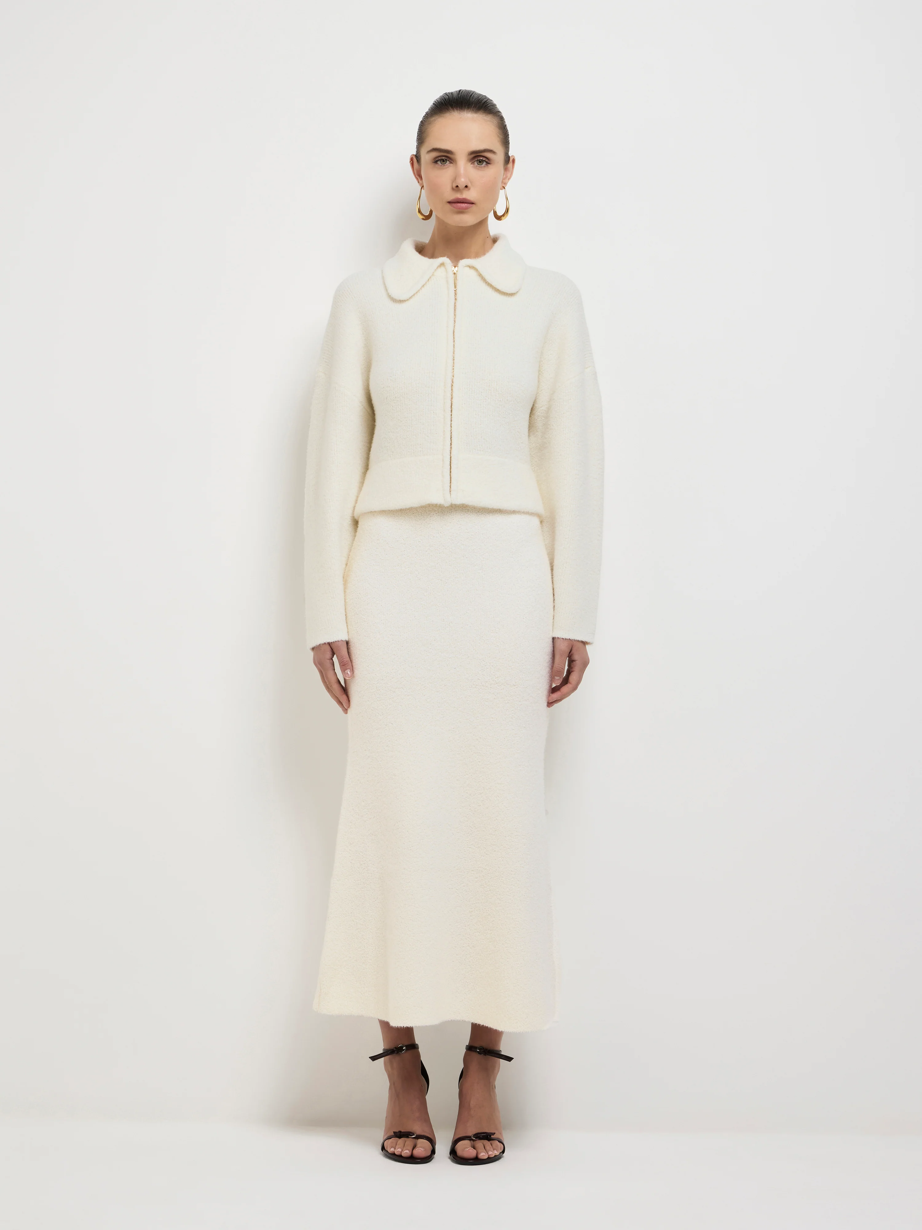 Step into luxury while still feeling comfortable. Introducing the Phoenix Jacket - Showcasing a brushed true knit fabrication, relaxed styling, drop shoulder with long sleeves, collar neckline and front zip closure. Pair back with our Matching Phoenix Knit Skirt to complete the look.Â